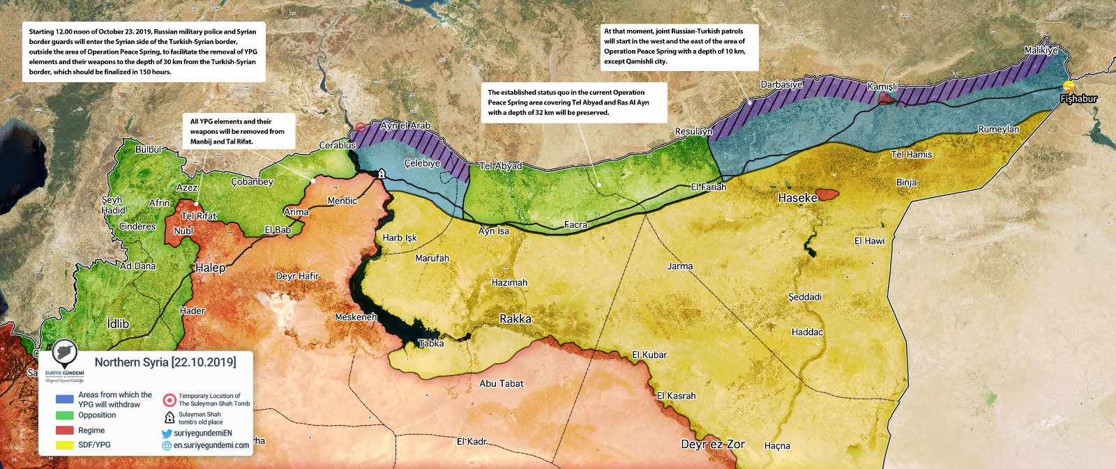 - October 23 - Map Comparison: Turkish-US Safe Zone vs. Turkish-Russian Safe Zone In Northeastern Syria (SouthFront.org)
